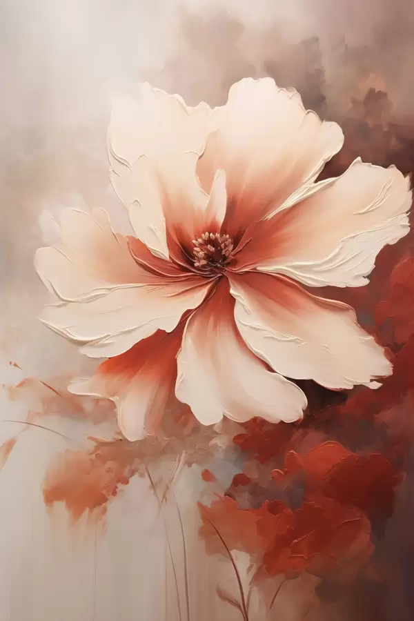 Plakatas Artimas baltos koralų gėlės vaizdas ant neryškaus fono, tapybos stiliumi Ne f46939
