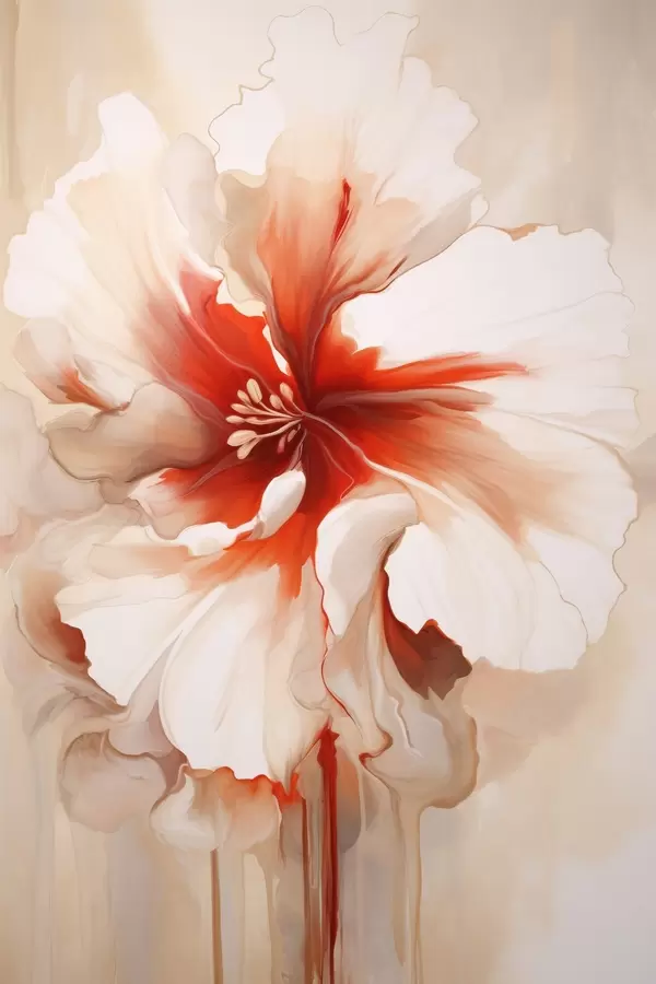Plakatas Artimas baltos ir raudonos gėlės su pusiau permatomais žiedlapiais ir tekančiais dažų lašais vaizdas f46941