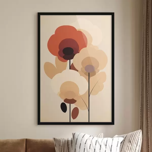 Plakatas Abstrakčios gėlės šiltos smėlio spalvos paletėje minimalistiniu stiliumi Ne f46942