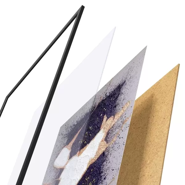 Plakatą sudaro rėmas, pleksiklas, atspausdintas vaizdas ir medžio drožlių plokštės pagrindas. Plakatą galima iš karto pakabinti ant sienos dėl kitoje pusėje esančių laikiklių.