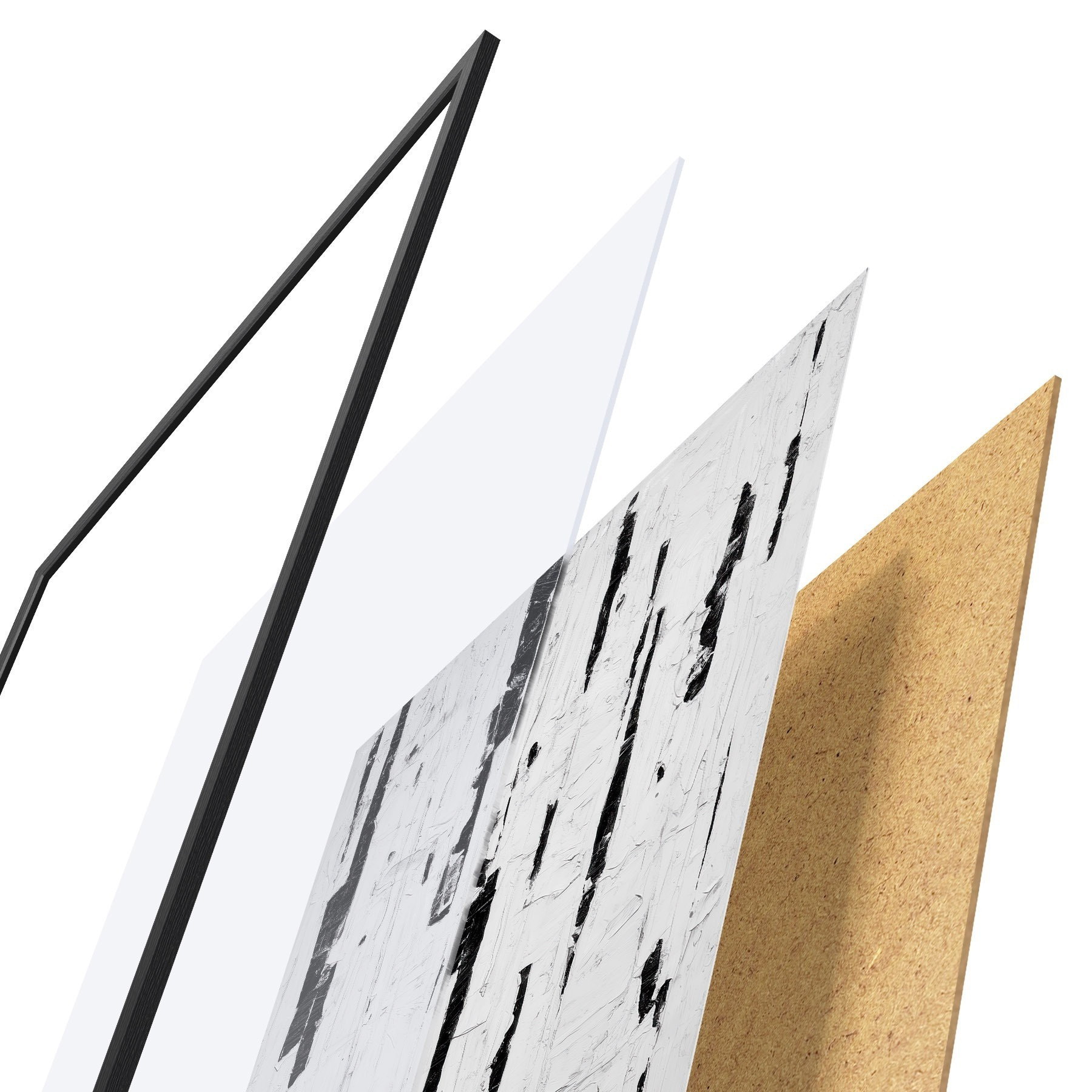 Plakatą sudaro rėmas, pleksiklas, atspausdintas vaizdas ir medžio drožlių plokštės pagrindas. Plakatą galima iš karto pakabinti ant sienos dėl kitoje pusėje esančių laikiklių.