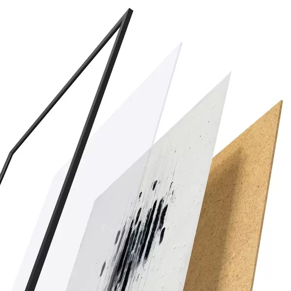 Plakatą sudaro rėmas, pleksiklas, atspausdintas vaizdas ir medžio drožlių plokštės pagrindas. Plakatą galima iš karto pakabinti ant sienos dėl kitoje pusėje esančių laikiklių.