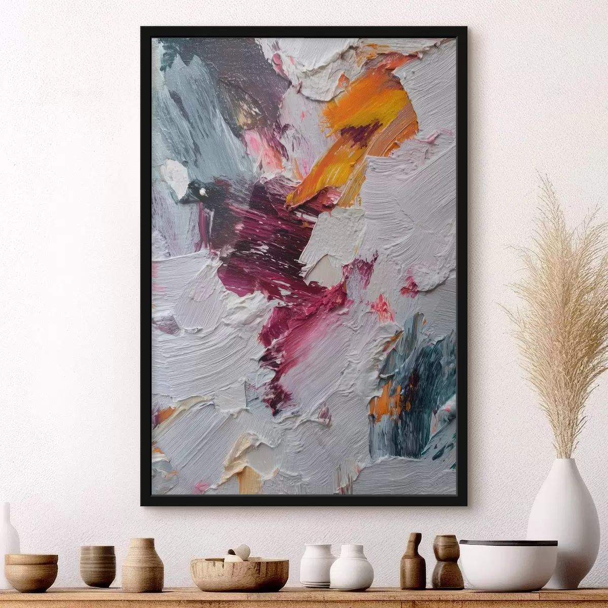 Plakatas Abstraktaus kompozicijos su intensyviomis vyšnių ir apelsinų potėpiais aliejaus tapybos stiliumi Ne f46959