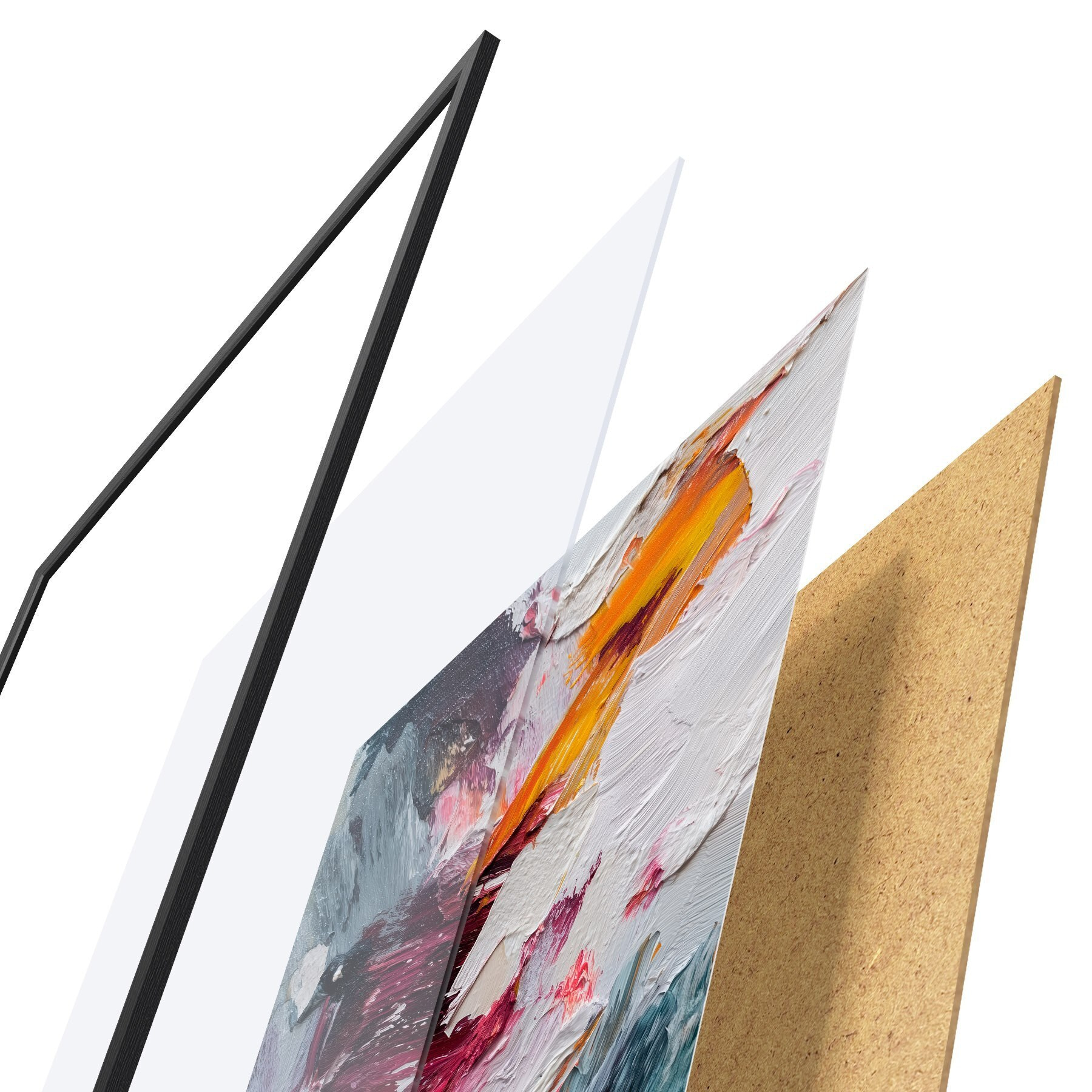 Plakatą sudaro rėmas, pleksiklas, atspausdintas vaizdas ir medžio drožlių plokštės pagrindas. Plakatą galima iš karto pakabinti ant sienos dėl kitoje pusėje esančių laikiklių.