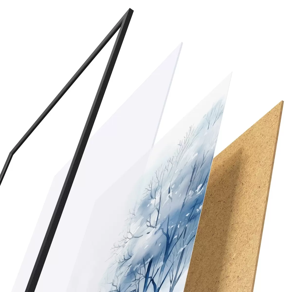Plakatą sudaro rėmas, pleksiklas, atspausdintas vaizdas ir medžio drožlių plokštės pagrindas. Plakatą galima iš karto pakabinti ant sienos dėl kitoje pusėje esančių laikiklių.