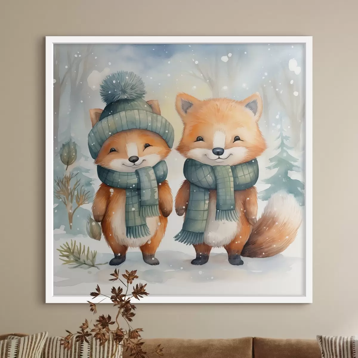 Plakatas Dvi mažos lapės, imituojantis akvarelė f46969