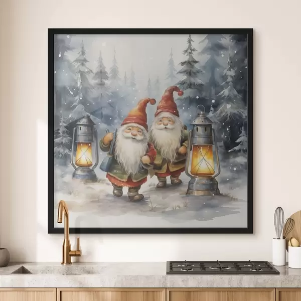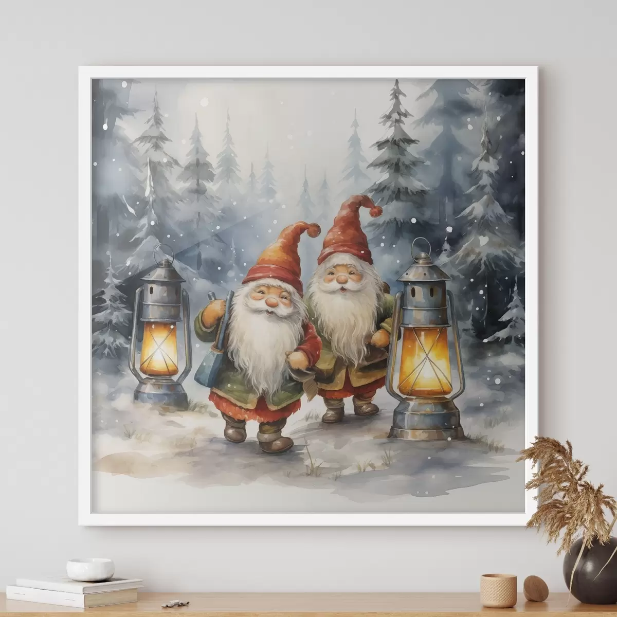 Plakatas Naujųjų metų nykštukai, imituojantys akvarelę f46970