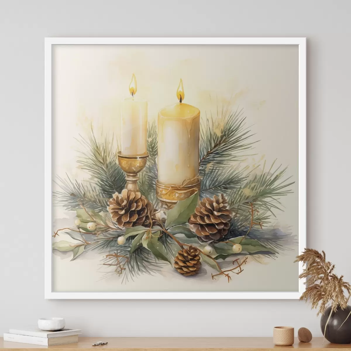 Plakatas Kompozicija, Nauji metai, Eglė ir žvakės f46971