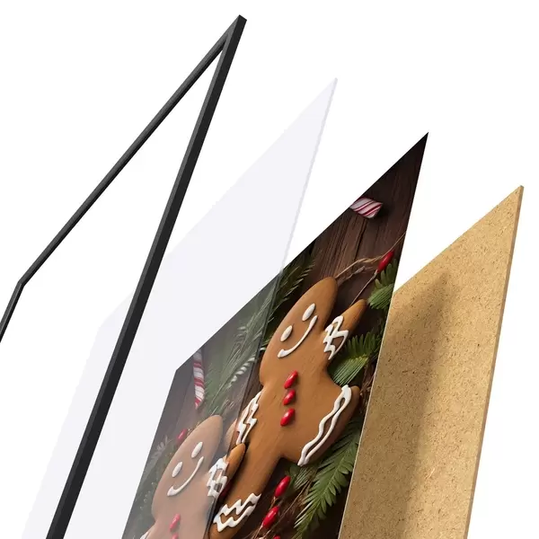 Plakatą sudaro rėmas, pleksiklas, atspausdintas vaizdas ir medžio drožlių plokštės pagrindas. Plakatą galima iš karto pakabinti ant sienos dėl kitoje pusėje esančių laikiklių.