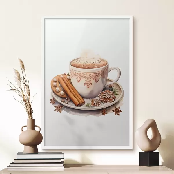 Plakatas Akrilo dažais tapytas piešinys, kava su cinamonu f46983