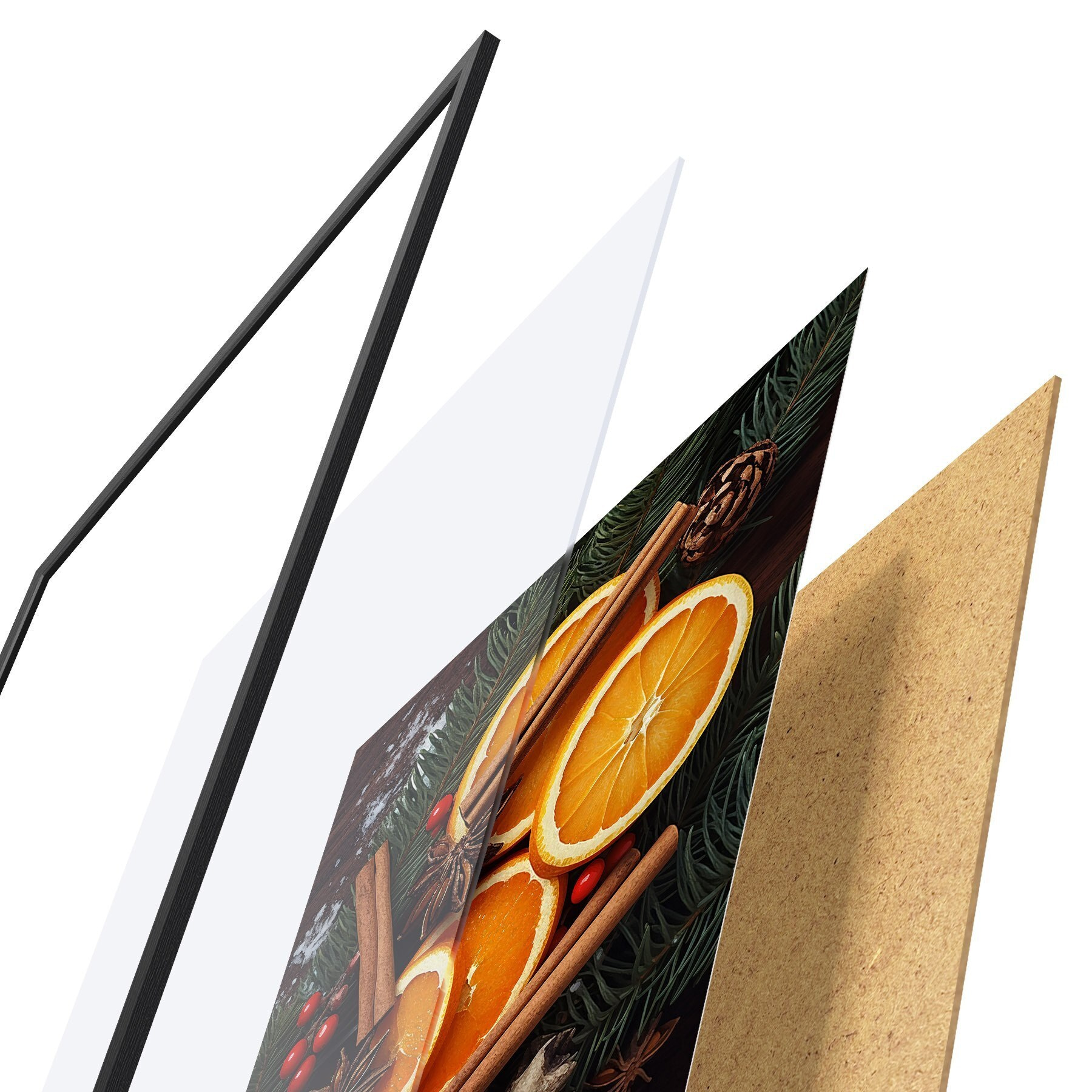 Plakatą sudaro rėmas, pleksiklas, atspausdintas vaizdas ir medžio drožlių plokštės pagrindas. Plakatą galima iš karto pakabinti ant sienos dėl kitoje pusėje esančių laikiklių.
