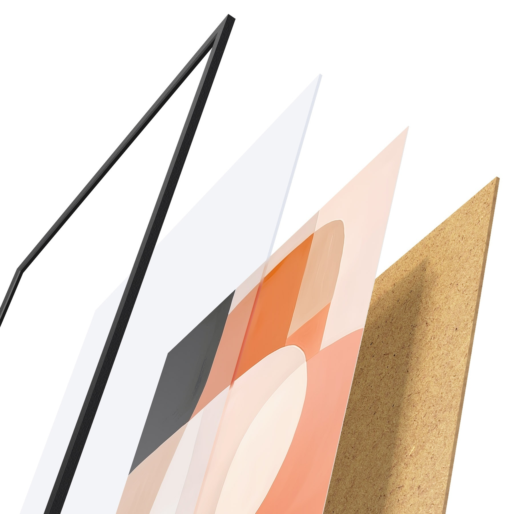 Plakatą sudaro rėmas, pleksiklas, atspausdintas vaizdas ir medžio drožlių plokštės pagrindas. Plakatą galima iš karto pakabinti ant sienos dėl kitoje pusėje esančių laikiklių.