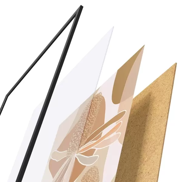 Plakatą sudaro rėmas, pleksiklas, atspausdintas vaizdas ir medžio drožlių plokštės pagrindas. Plakatą galima iš karto pakabinti ant sienos dėl kitoje pusėje esančių laikiklių.