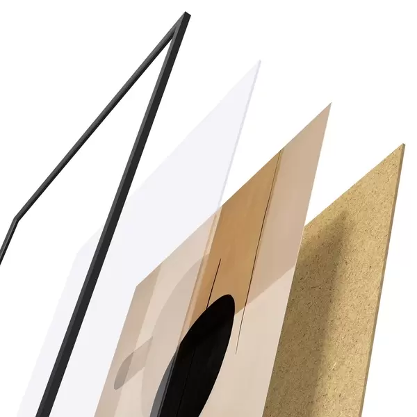 Plakatą sudaro rėmas, pleksiklas, atspausdintas vaizdas ir medžio drožlių plokštės pagrindas. Plakatą galima iš karto pakabinti ant sienos dėl kitoje pusėje esančių laikiklių.