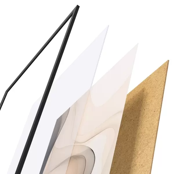 Plakatą sudaro rėmas, pleksiklas, atspausdintas vaizdas ir medžio drožlių plokštės pagrindas. Plakatą galima iš karto pakabinti ant sienos dėl kitoje pusėje esančių laikiklių.
