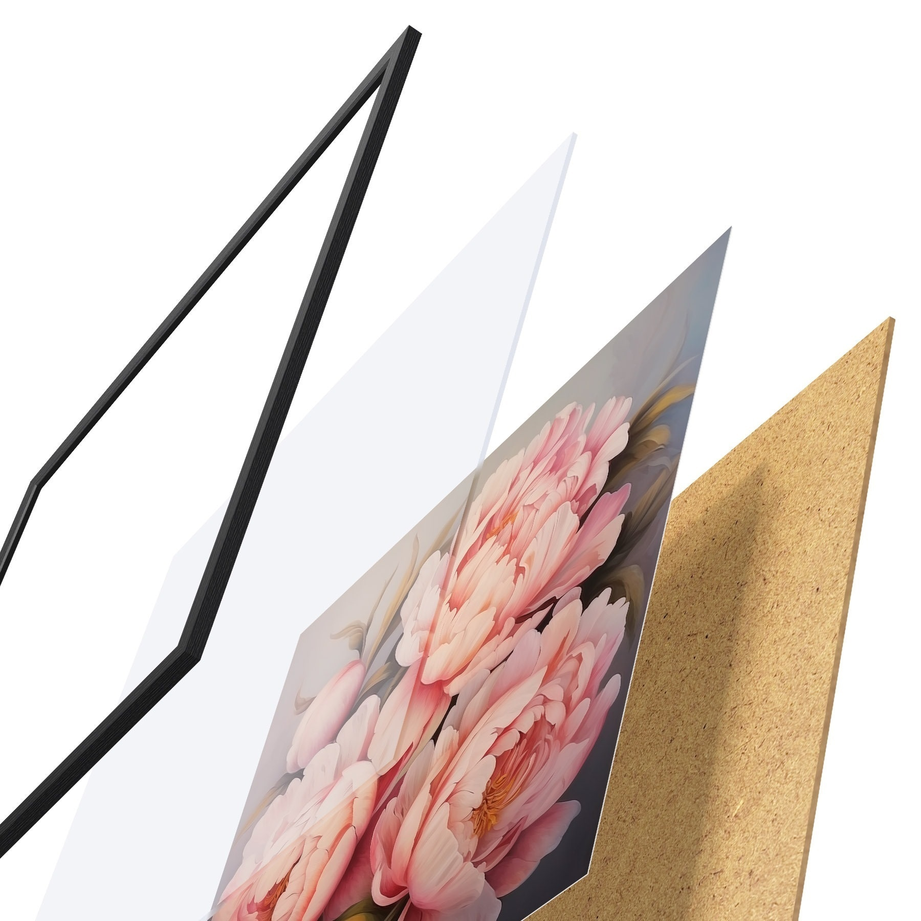 Plakatą sudaro rėmas, pleksiklas, atspausdintas vaizdas ir medžio drožlių plokštės pagrindas. Plakatą galima iš karto pakabinti ant sienos dėl kitoje pusėje esančių laikiklių.