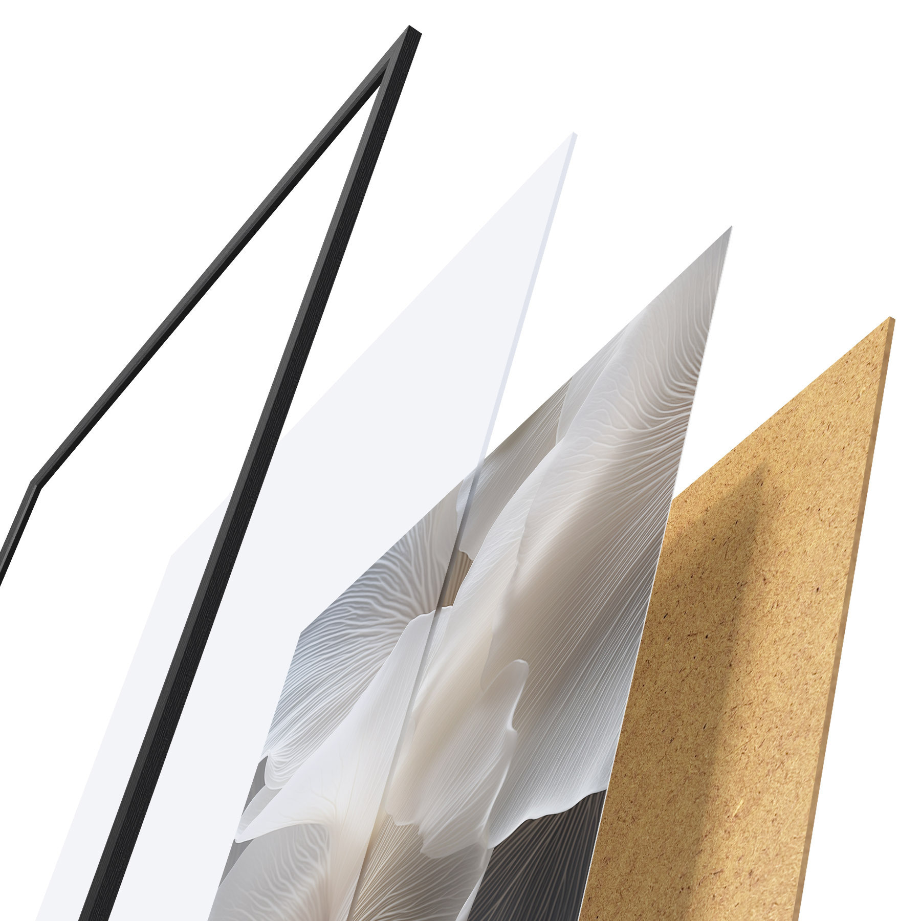 Plakatą sudaro rėmas, pleksiklas, atspausdintas vaizdas ir medžio drožlių plokštės pagrindas. Plakatą galima iš karto pakabinti ant sienos dėl kitoje pusėje esančių laikiklių.