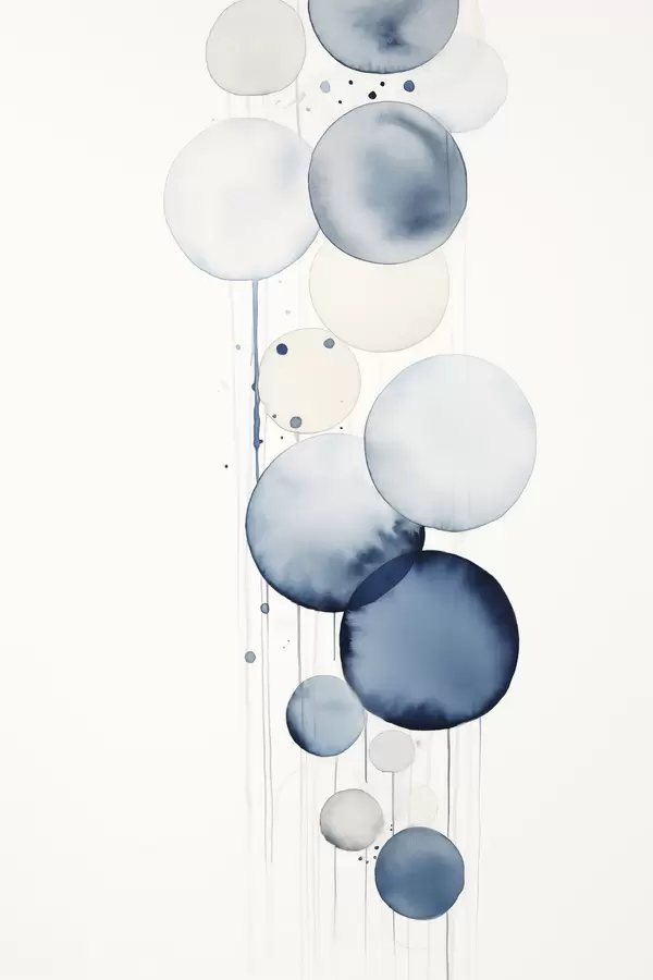Plakatas Abstrakčios tekstūros mėlynos ir baltos akvarelės apskritimai įvairių dydžių, ant balto fono f47020