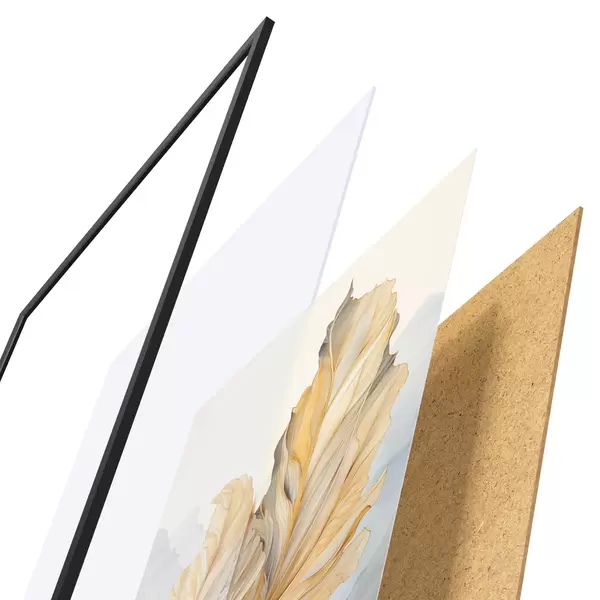 Plakatą sudaro rėmas, pleksiklas, atspausdintas vaizdas ir medžio drožlių plokštės pagrindas. Plakatą galima iš karto pakabinti ant sienos dėl kitoje pusėje esančių laikiklių.