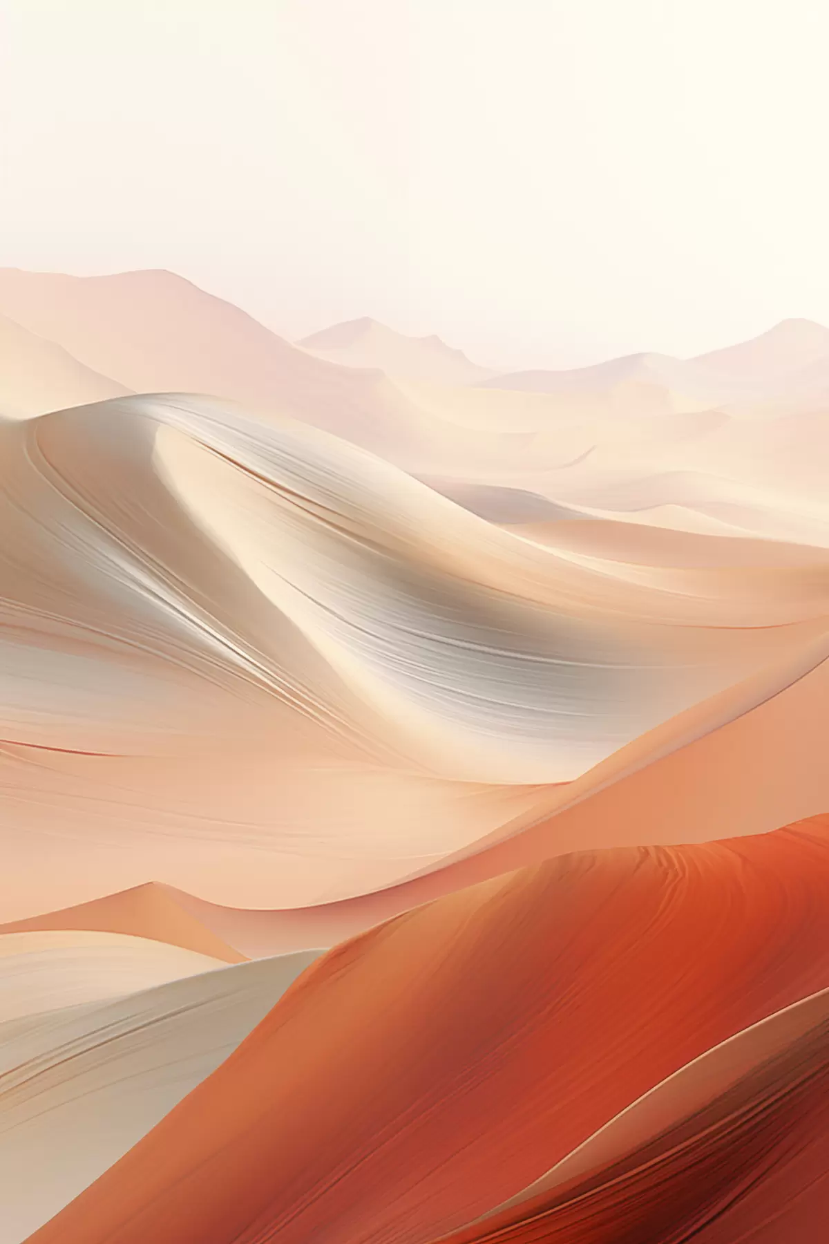 Plakatas Abstraktus dykumos peizažas su banguojančiomis smėlio kopomis šiltų oranžinių ir baltų atspalvių f47030