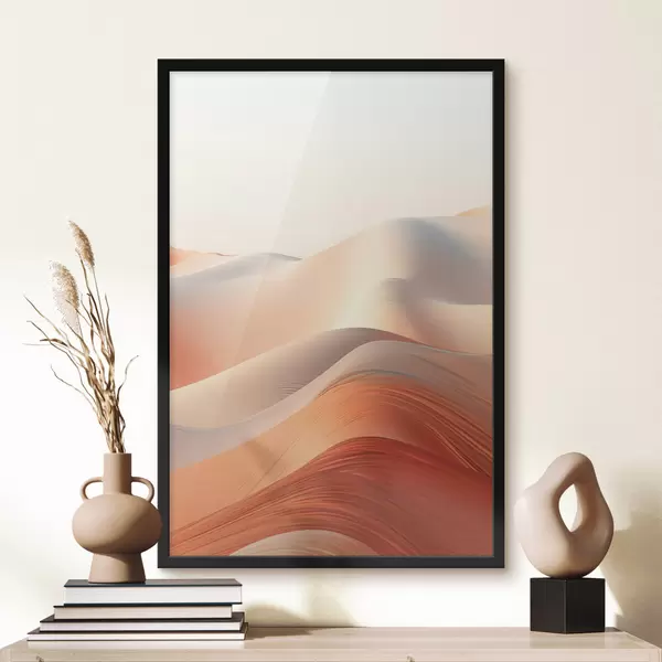 Plakatas Abstraktus dykumos peizažas su banguojančiomis smėlio kopomis šiltų oranžinių ir baltų atspalvių f47031