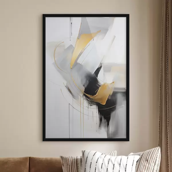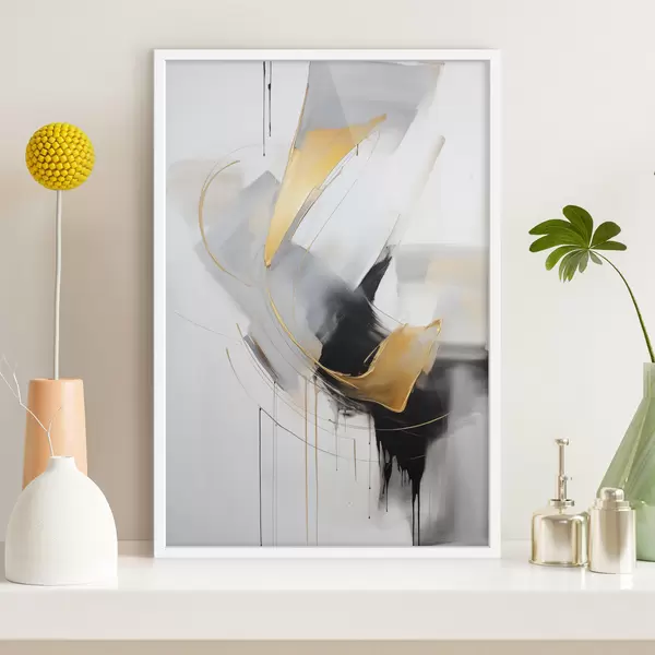 Plakatas Abstraktaus tapybos kūrinys su geltonos, juodos ir baltos spalvų potėpiais, dinamiškomis linijomis. Ne f47034