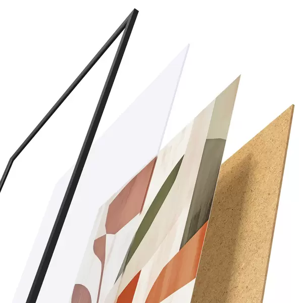 Plakatą sudaro rėmas, pleksiklas, atspausdintas vaizdas ir medžio drožlių plokštės pagrindas. Plakatą galima iš karto pakabinti ant sienos dėl kitoje pusėje esančių laikiklių.