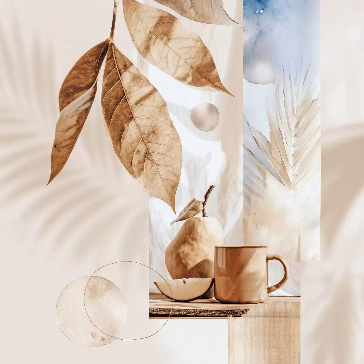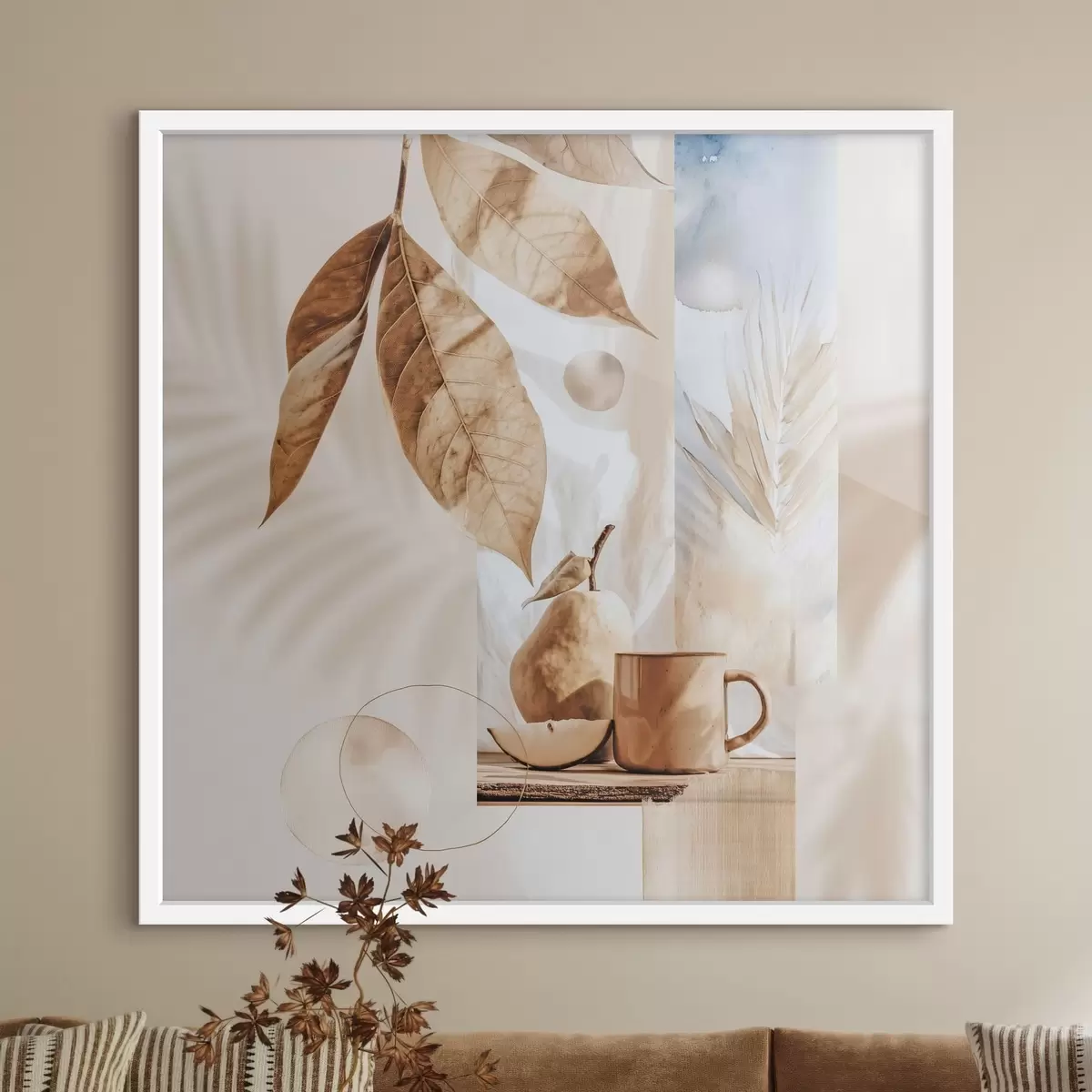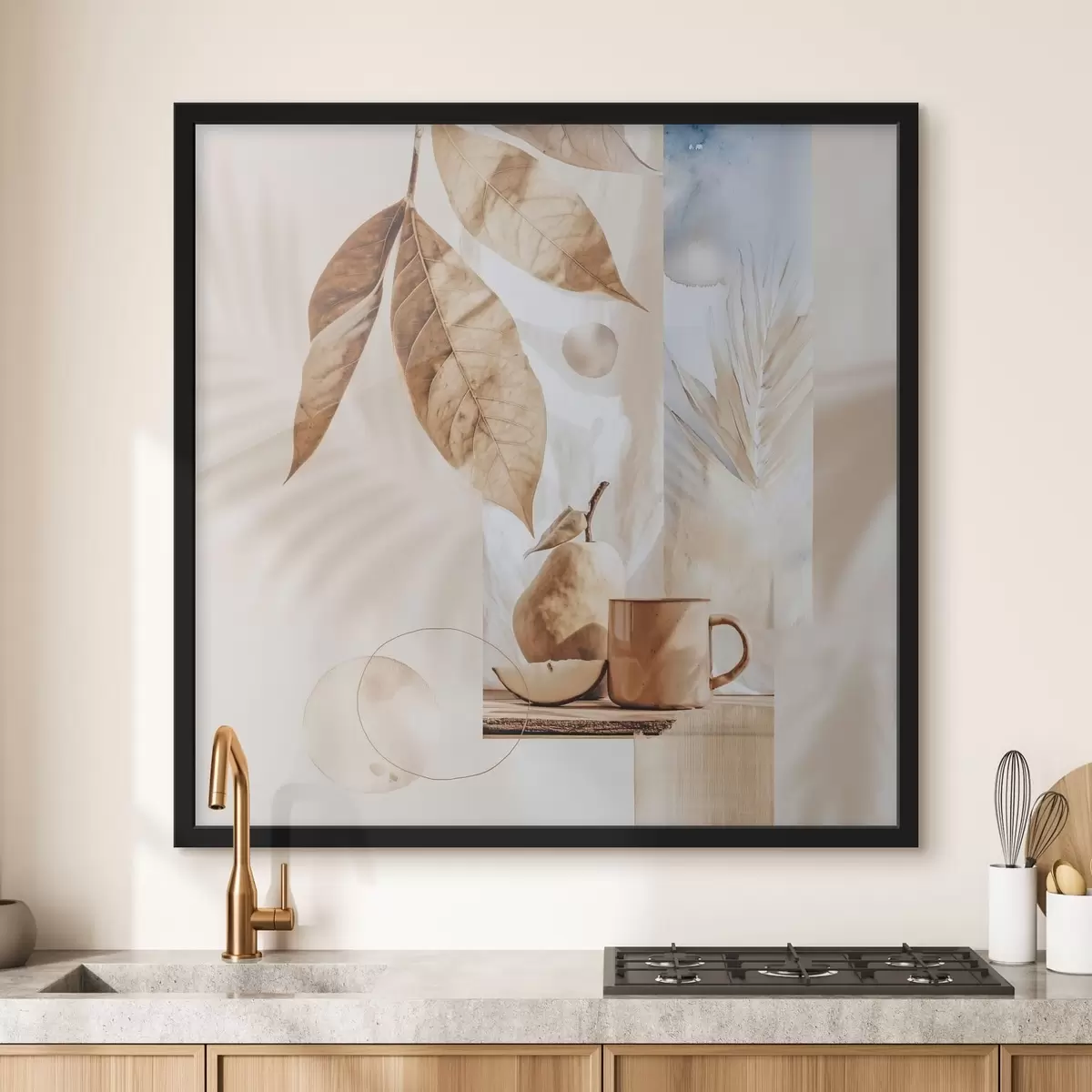 Plakatas Abstraktus su lapais, kriauše ir puodeliu Ne f47047