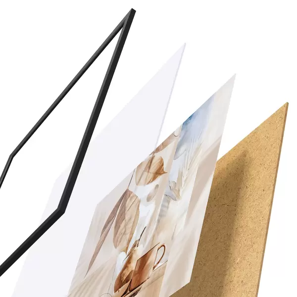 Plakatą sudaro rėmas, pleksiklas, atspausdintas vaizdas ir medžio drožlių plokštės pagrindas. Plakatą galima iš karto pakabinti ant sienos dėl kitoje pusėje esančių laikiklių.