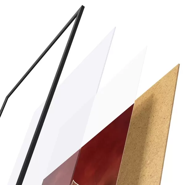 Plakatą sudaro rėmas, pleksiklas, atspausdintas vaizdas ir medžio drožlių plokštės pagrindas. Plakatą galima iš karto pakabinti ant sienos dėl kitoje pusėje esančių laikiklių.