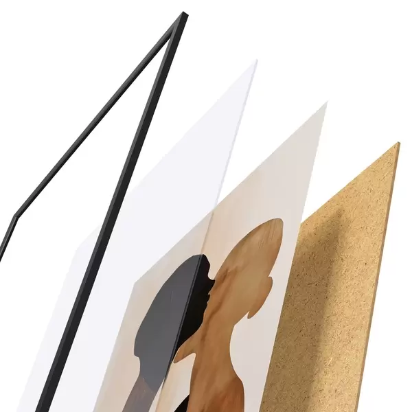 Plakatą sudaro rėmas, pleksiklas, atspausdintas vaizdas ir medžio drožlių plokštės pagrindas. Plakatą galima iš karto pakabinti ant sienos dėl kitoje pusėje esančių laikiklių.