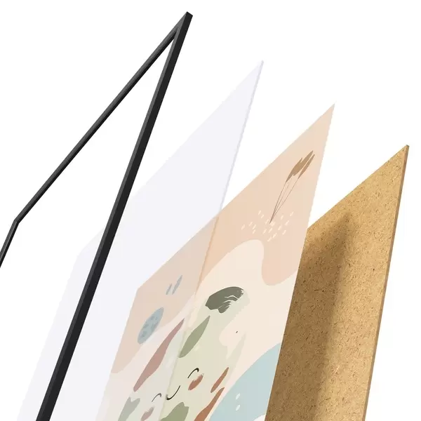 Plakatą sudaro rėmas, pleksiklas, atspausdintas vaizdas ir medžio drožlių plokštės pagrindas. Plakatą galima iš karto pakabinti ant sienos dėl kitoje pusėje esančių laikiklių.