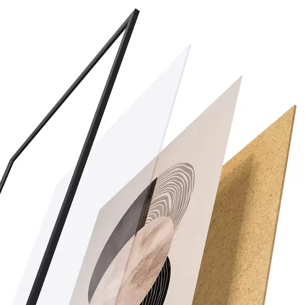Plakatą sudaro rėmas, pleksiklas, atspausdintas vaizdas ir medžio drožlių plokštės pagrindas. Plakatą galima iš karto pakabinti ant sienos dėl kitoje pusėje esančių laikiklių.