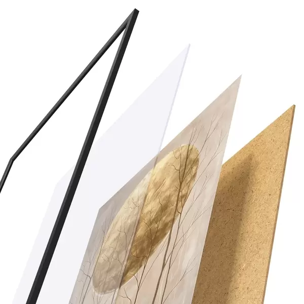 Plakatą sudaro rėmas, pleksiklas, atspausdintas vaizdas ir medžio drožlių plokštės pagrindas. Plakatą galima iš karto pakabinti ant sienos dėl kitoje pusėje esančių laikiklių.