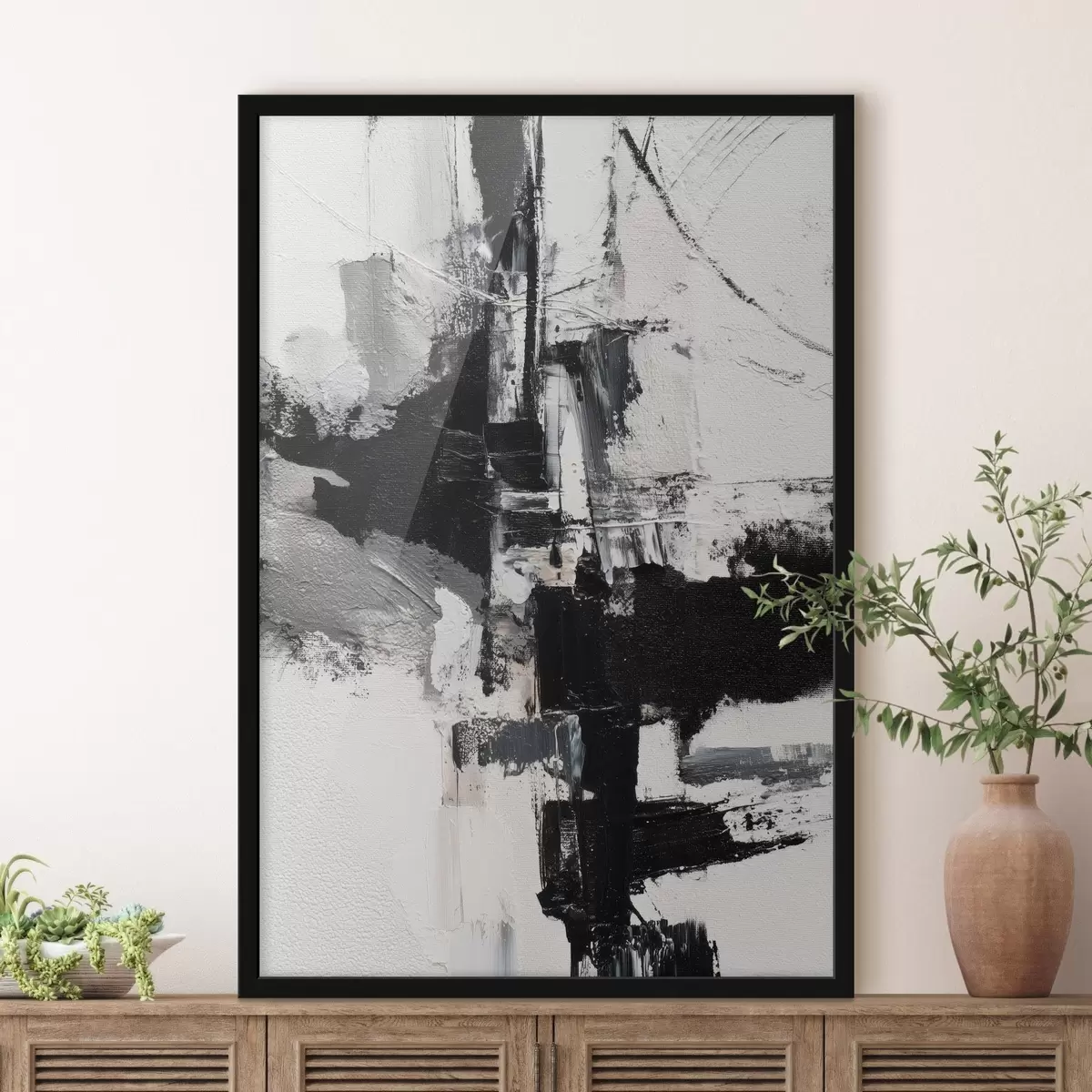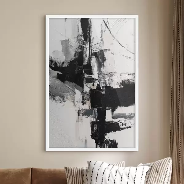 Plakatas Tekstūruota iliustracija su kontrastingais juodais ir pilkais potėpiais aliejaus tapybos stiliumi f47091
