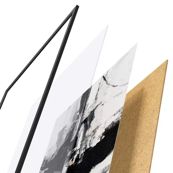 Plakatą sudaro rėmas, pleksiklas, atspausdintas vaizdas ir medžio drožlių plokštės pagrindas. Plakatą galima iš karto pakabinti ant sienos dėl kitoje pusėje esančių laikiklių.
