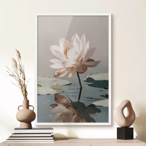 Plakatas Balta lotoso gėlė ant pastelinio fono, tapyta aliejiniais dažais f47093