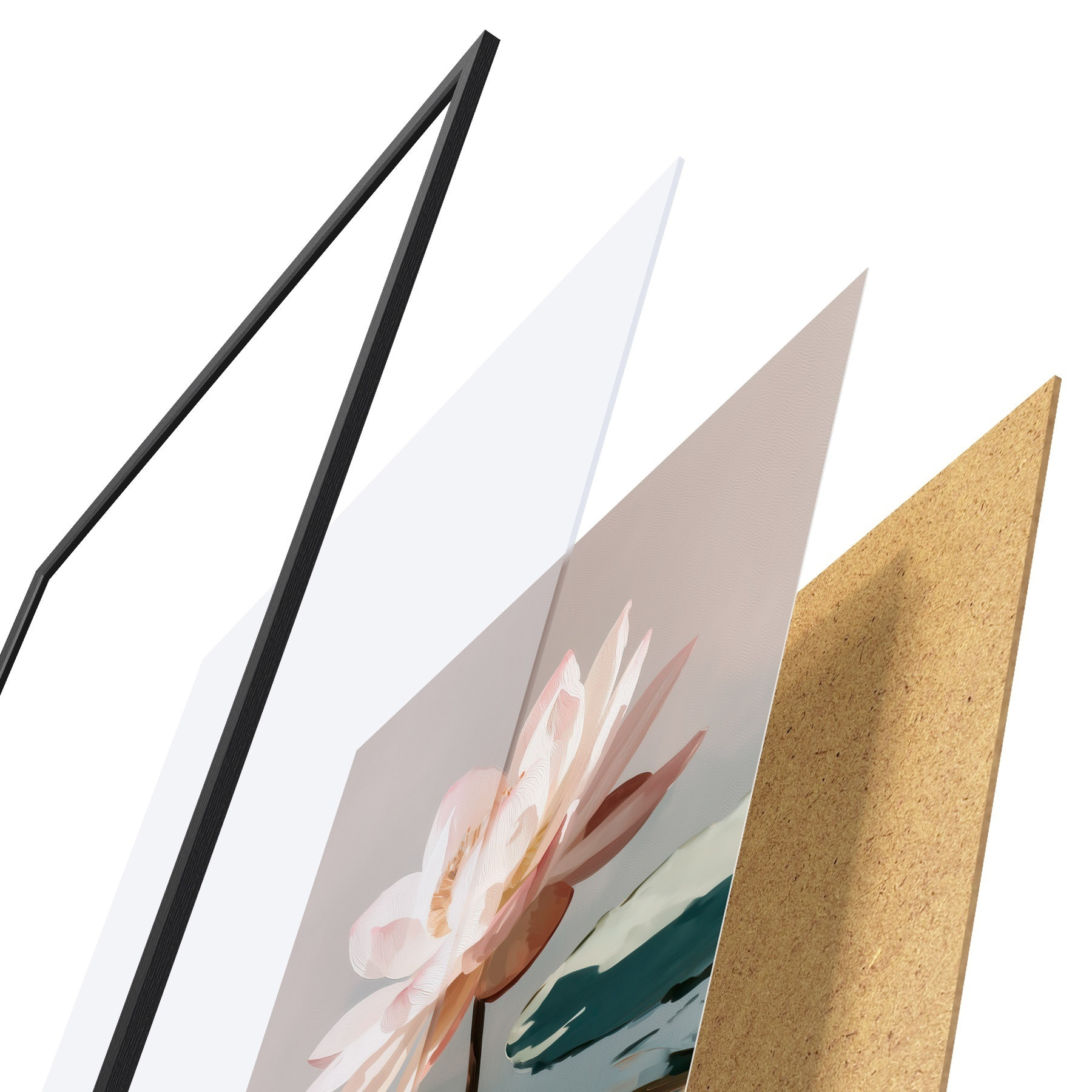 Plakatą sudaro rėmas, pleksiklas, atspausdintas vaizdas ir medžio drožlių plokštės pagrindas. Plakatą galima iš karto pakabinti ant sienos dėl kitoje pusėje esančių laikiklių.