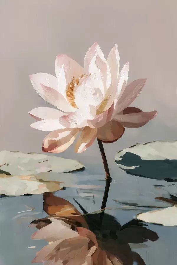 Plakatas Balta lotoso gėlė ant pastelinio fono, tapyta aliejiniais dažais f47093