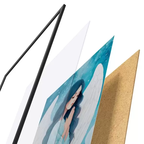 Plakatą sudaro rėmas, pleksiklas, atspausdintas vaizdas ir medžio drožlių plokštės pagrindas. Plakatą galima iš karto pakabinti ant sienos dėl kitoje pusėje esančių laikiklių.
