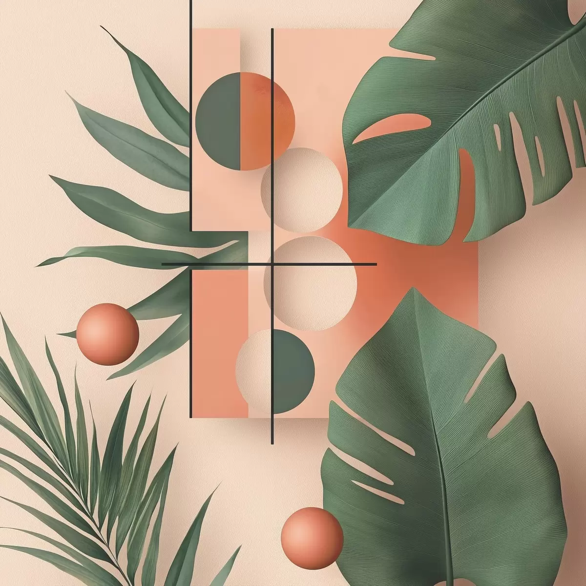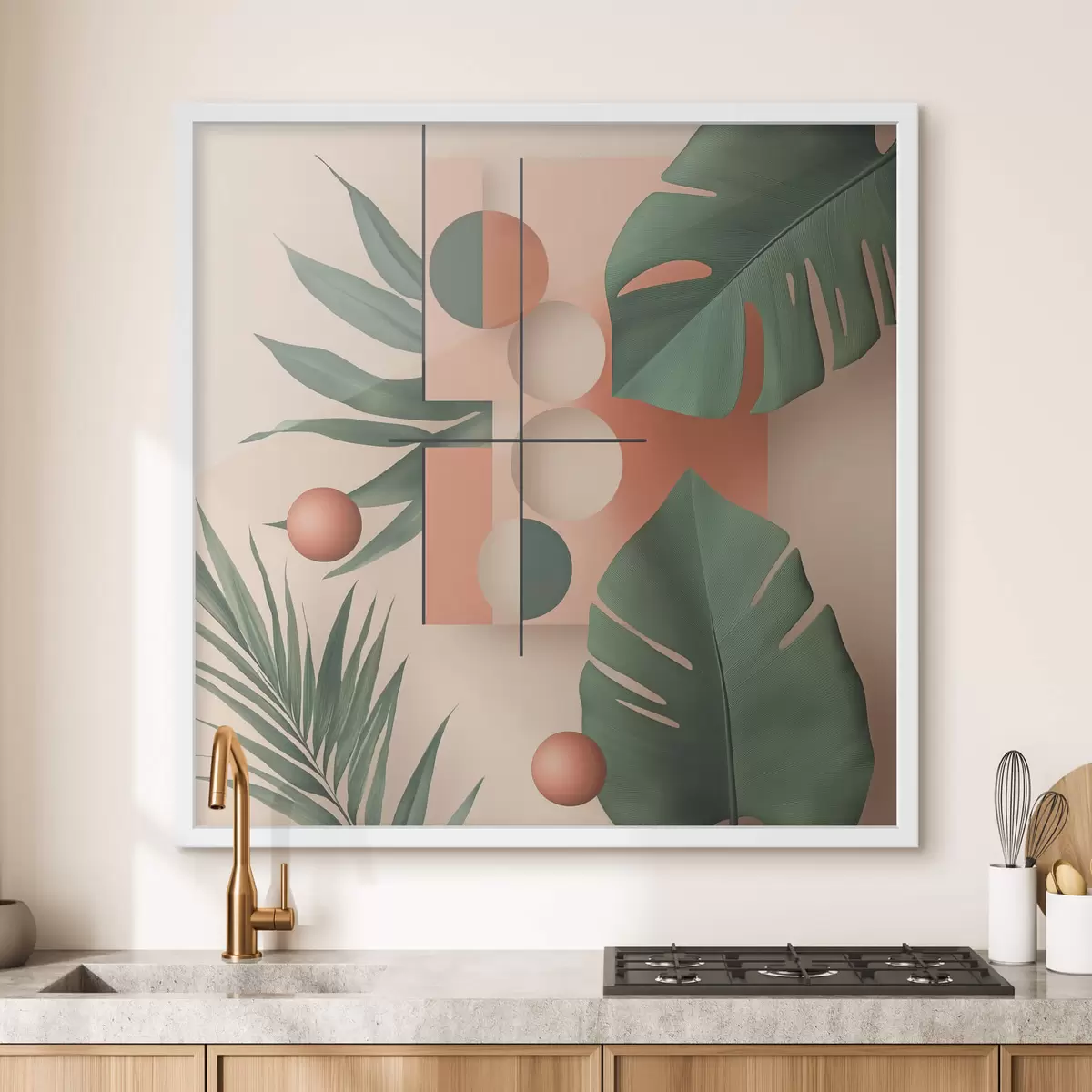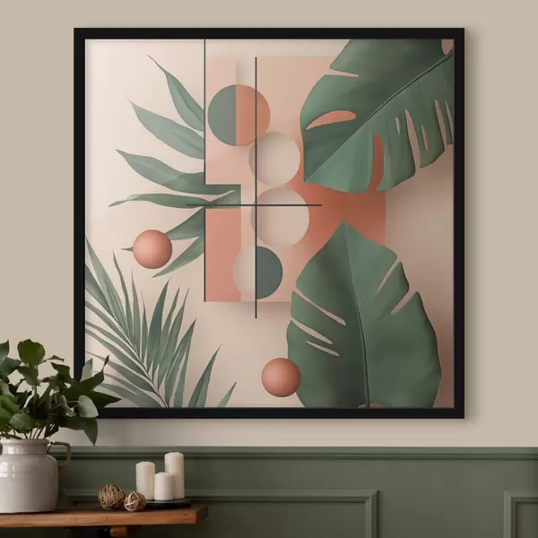 Plakatas Abstrakcija su dideliais tropiniais lapais f47099