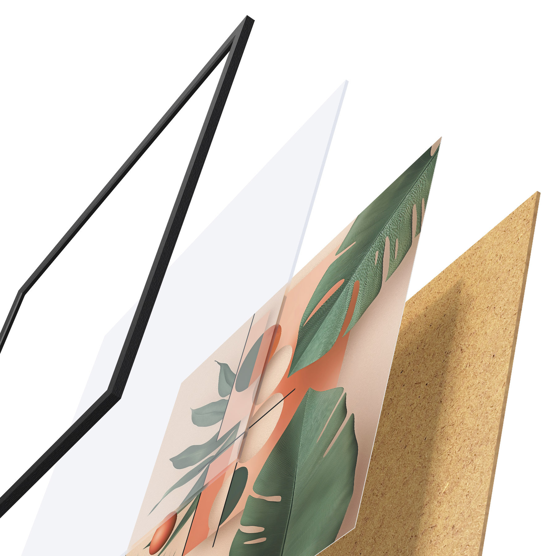 Plakatą sudaro rėmas, pleksiklas, atspausdintas vaizdas ir medžio drožlių plokštės pagrindas. Plakatą galima iš karto pakabinti ant sienos dėl kitoje pusėje esančių laikiklių.