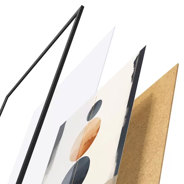 Plakatą sudaro rėmas, pleksiklas, atspausdintas vaizdas ir medžio drožlių plokštės pagrindas. Plakatą galima iš karto pakabinti ant sienos dėl kitoje pusėje esančių laikiklių.
