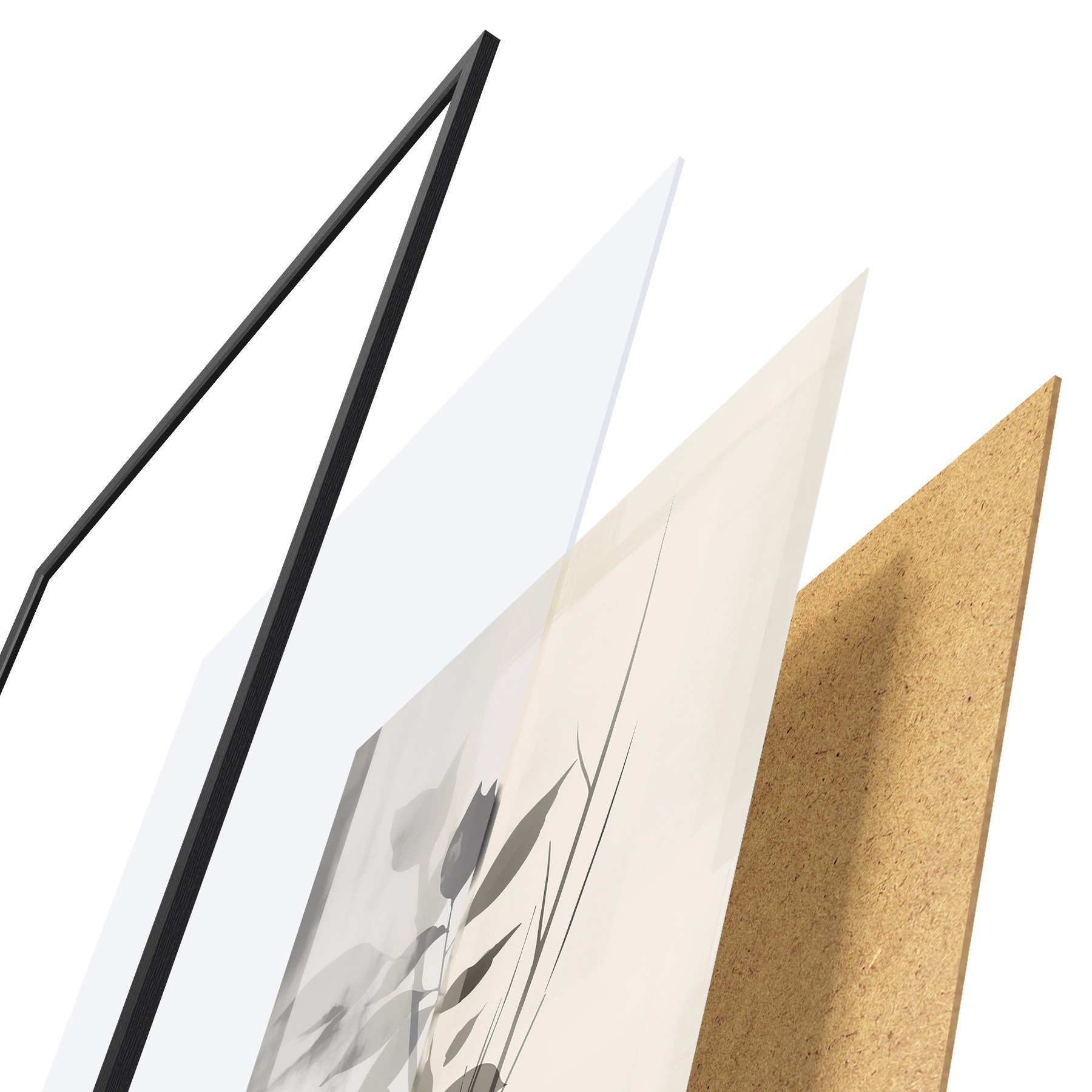 Plakatą sudaro rėmas, pleksiklas, atspausdintas vaizdas ir medžio drožlių plokštės pagrindas. Plakatą galima iš karto pakabinti ant sienos dėl kitoje pusėje esančių laikiklių.