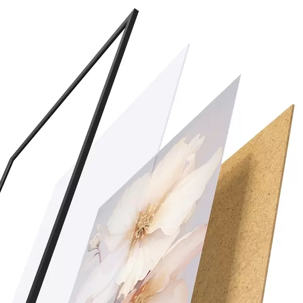 Plakatą sudaro rėmas, pleksiklas, atspausdintas vaizdas ir medžio drožlių plokštės pagrindas. Plakatą galima iš karto pakabinti ant sienos dėl kitoje pusėje esančių laikiklių.