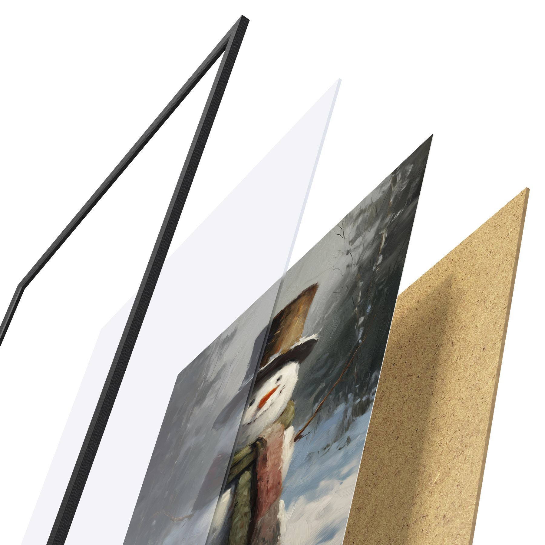Plakatą sudaro rėmas, pleksiklas, atspausdintas vaizdas ir medžio drožlių plokštės pagrindas. Plakatą galima iš karto pakabinti ant sienos dėl kitoje pusėje esančių laikiklių.
