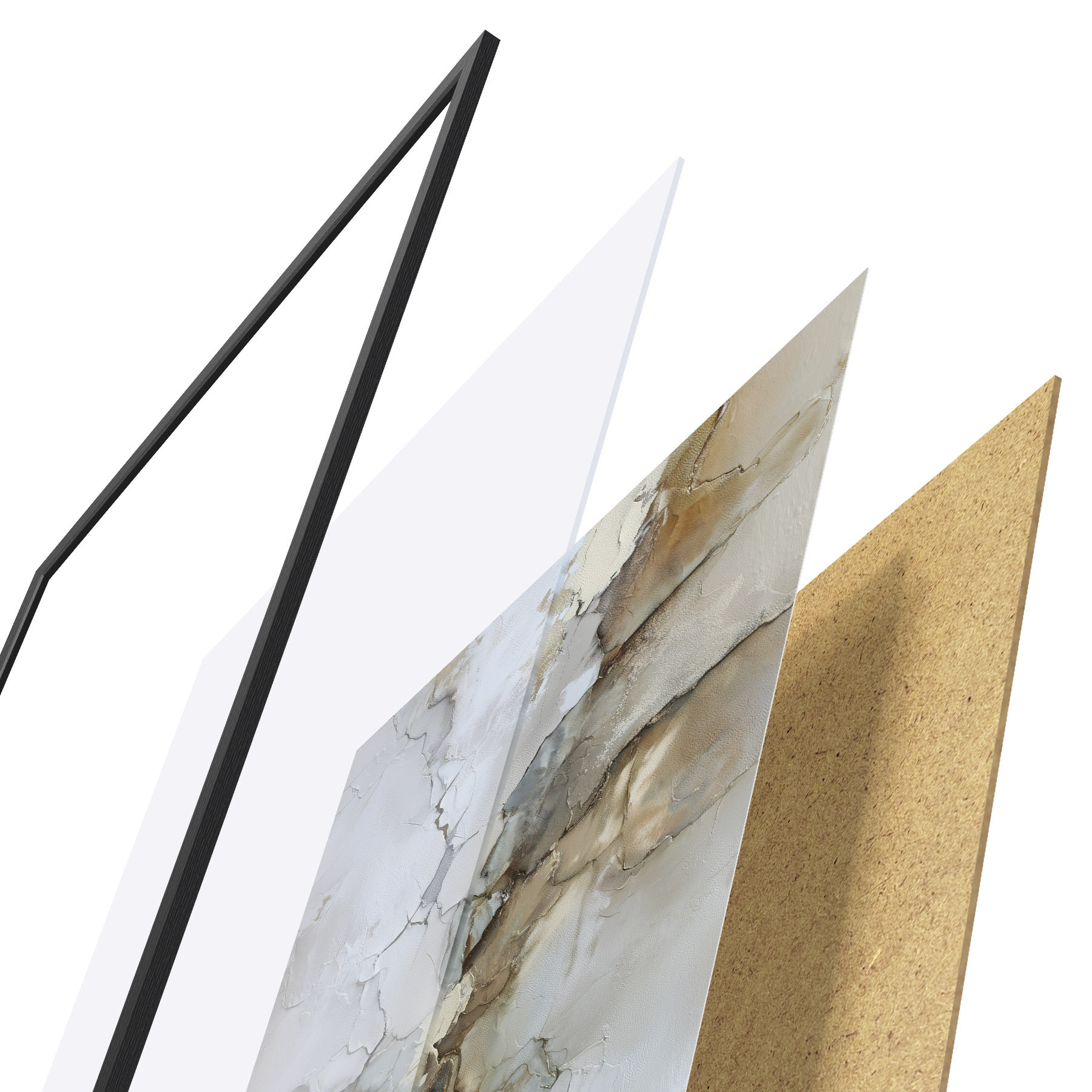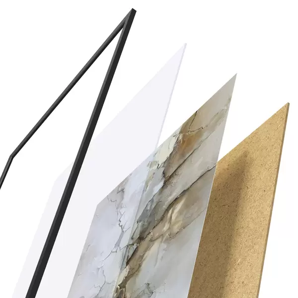 Plakatą sudaro rėmas, pleksiklas, atspausdintas vaizdas ir medžio drožlių plokštės pagrindas. Plakatą galima iš karto pakabinti ant sienos dėl kitoje pusėje esančių laikiklių.