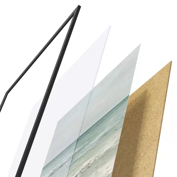 Plakatą sudaro rėmas, pleksiklas, atspausdintas vaizdas ir medžio drožlių plokštės pagrindas. Plakatą galima iš karto pakabinti ant sienos dėl kitoje pusėje esančių laikiklių.