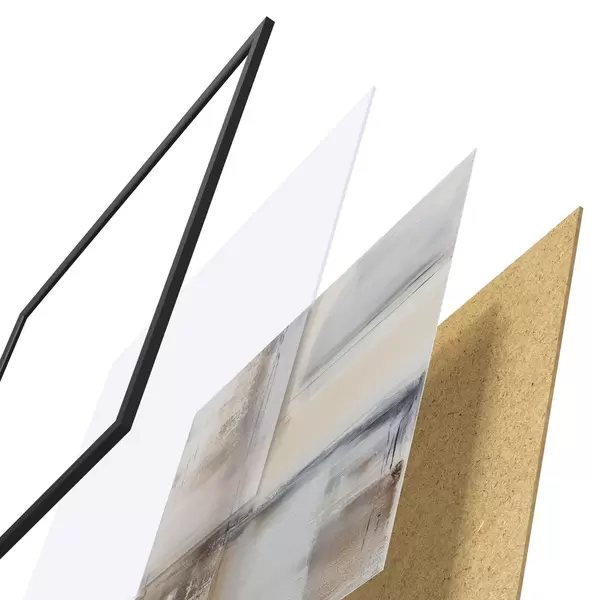Plakatą sudaro rėmas, pleksiklas, atspausdintas vaizdas ir medžio drožlių plokštės pagrindas. Plakatą galima iš karto pakabinti ant sienos dėl kitoje pusėje esančių laikiklių.