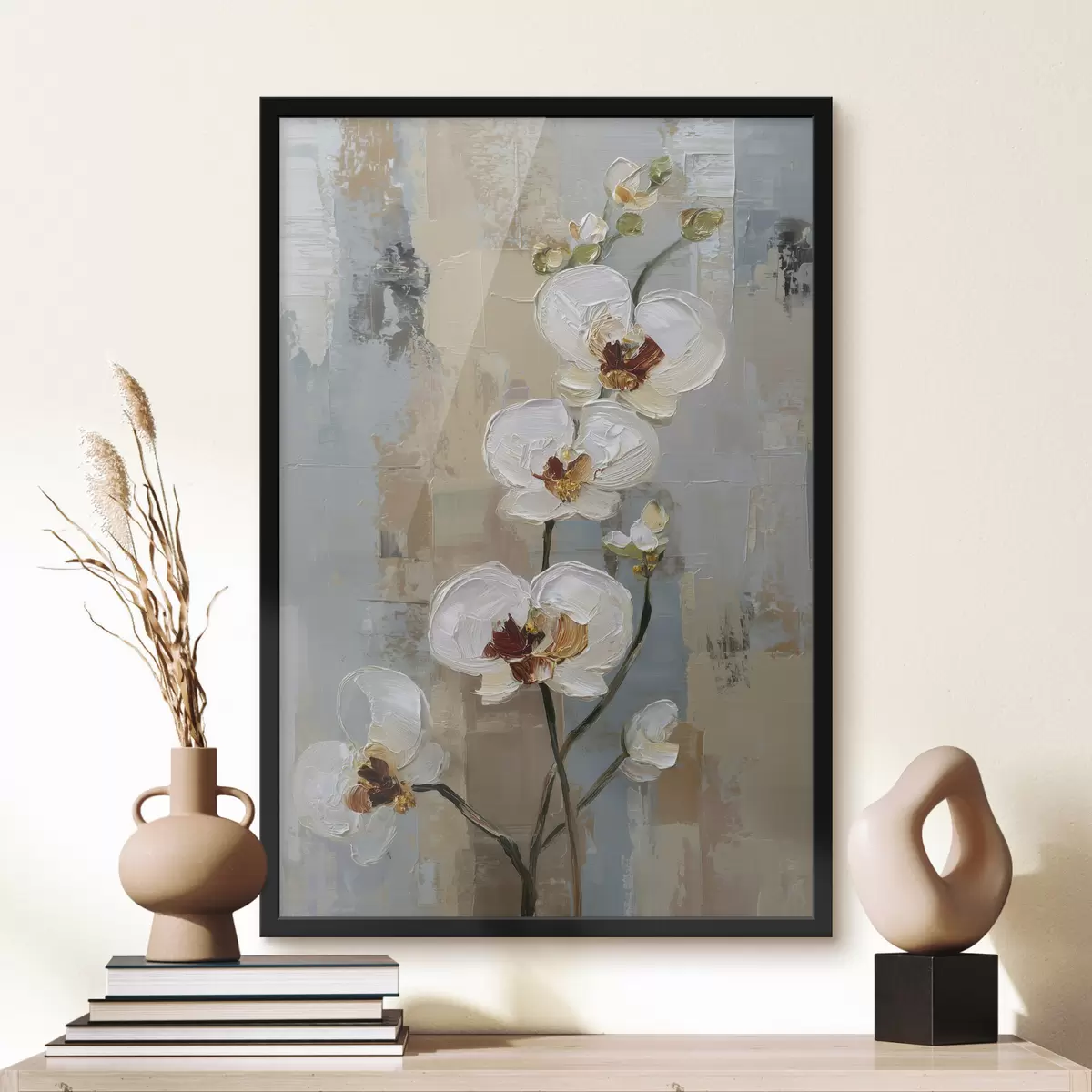Plakatas baltos orchidėjos gėlės aliejaus tapybos stiliumi Ne f47131